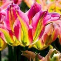 Тюльпан Виричик из группы Виридифлора удивляет своей красочной формой и необычной расцветкой. Его вытянутые благородные бутоны, окрашенные в нежно-розовый цвет, ненавязчиво разбавлены ярко-зеленой штриховкой по спинке лепестков. Соцветия притягивают к себе восхищенные взгляды прохожих на протяжении всего периода цветения.
